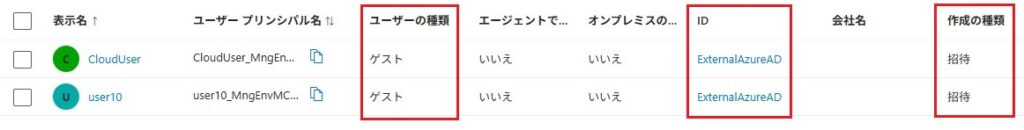 ※元テナントでは、CloudUser=クラウドID。user10=ハイブリッドID