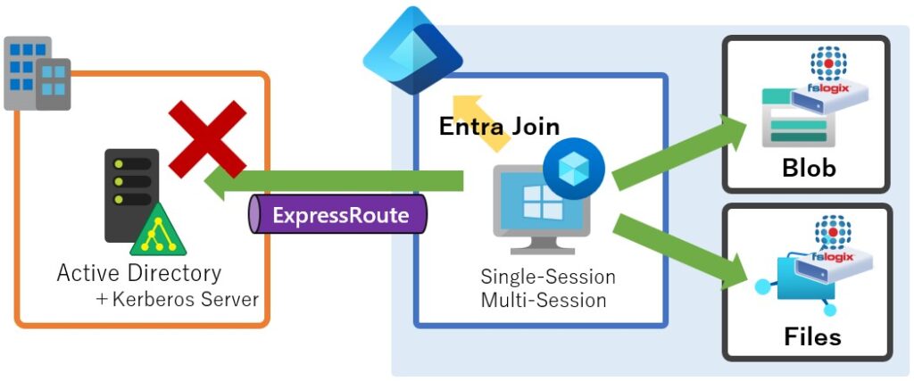 ・ADドメイン環境へのシームレスな接続はできません。Entra KerberosがあってもNG