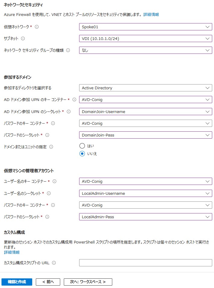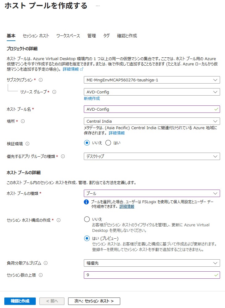 ここで指定した内容がセッションホスト構成(テンプレート)として保存されます。