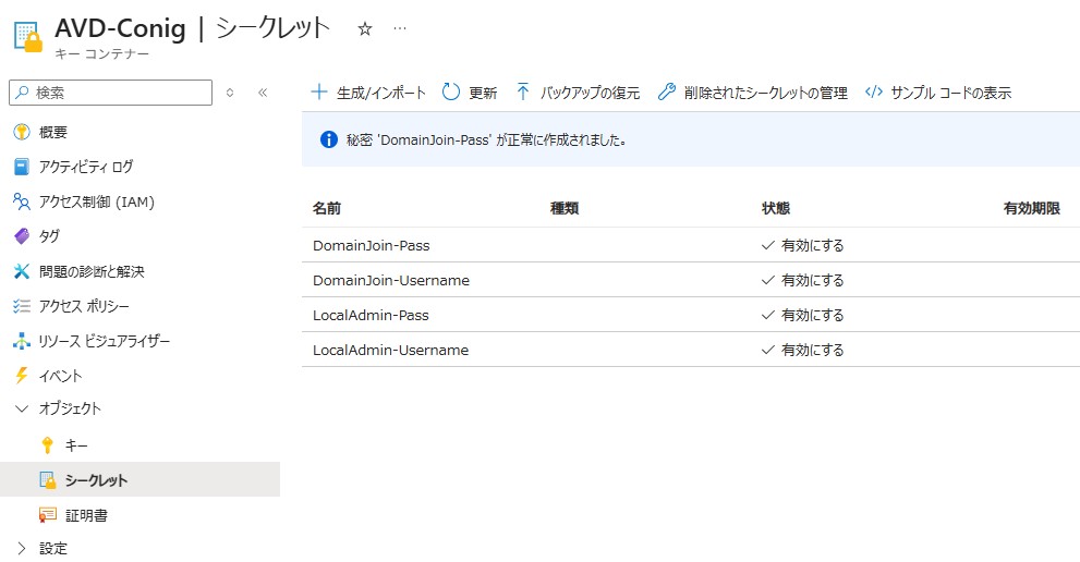 セッションホスト作成時に利用する、[ドメイン参加アカウント][ロール管理者アカウント]を作成しておきます。