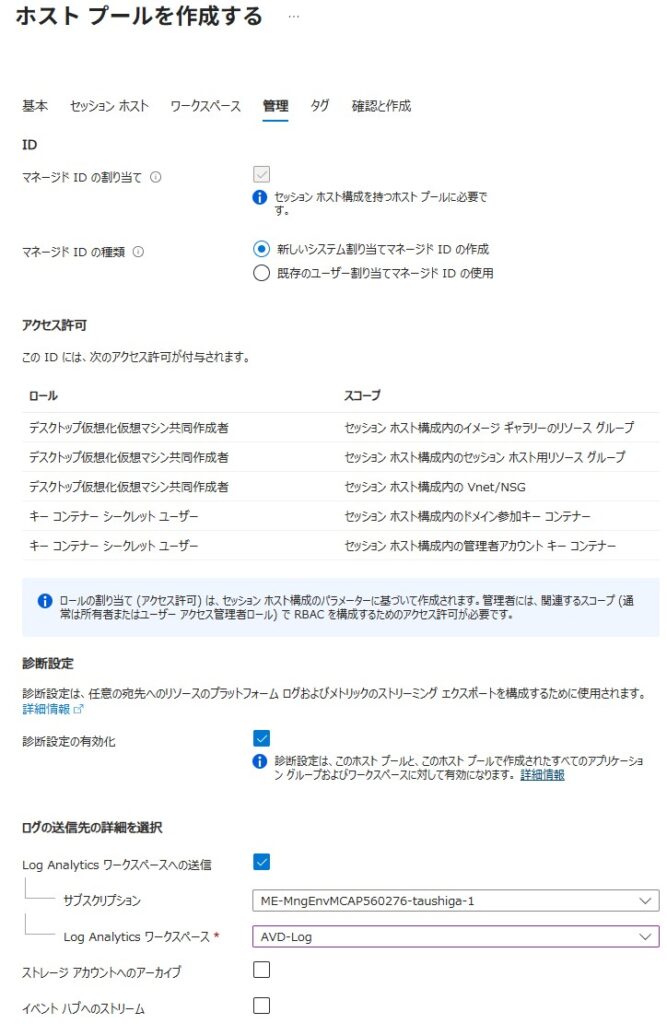 ホストプールに紐づく[システム割り当てマネージドID]を作成します。