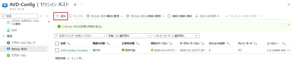 指定した台数分、セッションホスト構成(テンプレート)を元に自動的に作成されます。
