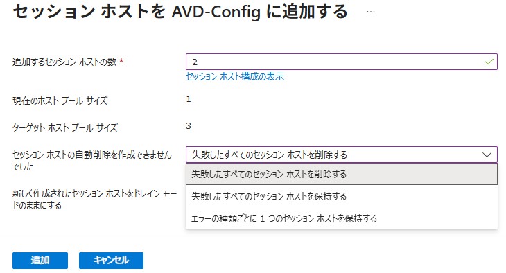 ※セッションホストを減らしたい場合は、プールから削除する事で対応できます。