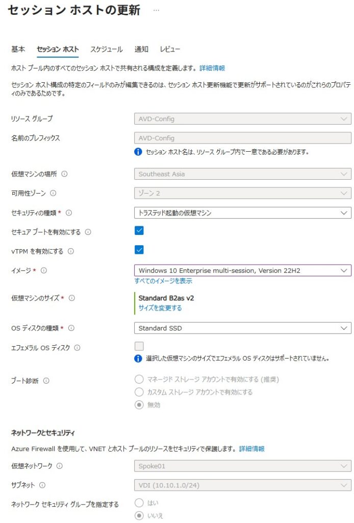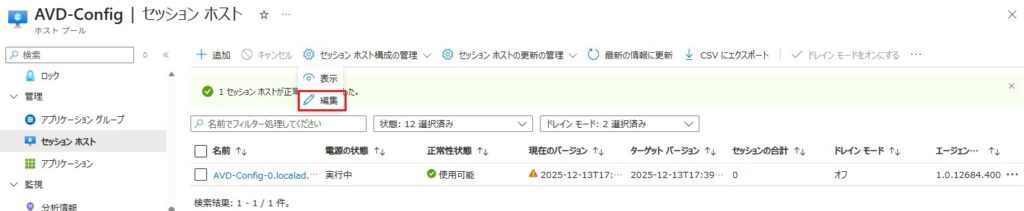 [ホストプール]ー[セッションホスト]ー[セッションホスト構成の管理]ー[編集]