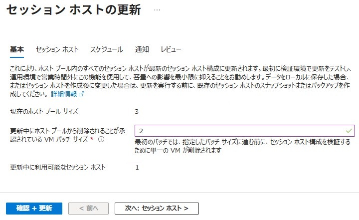 更新中に利用可能なセッションホスト:更新中に利用できるVM数