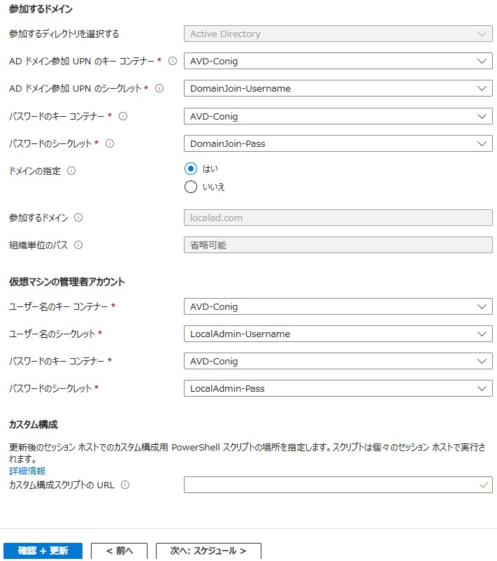 仮想マシンの管理者アカウント:Step2で作成したシークレットを選択