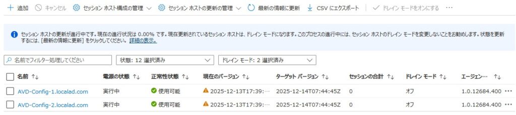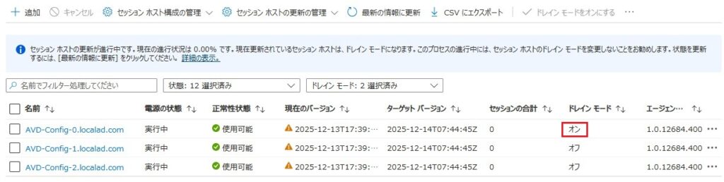最初は必ず1台のみが更新され、検証されます。更新対象VMはドレインモードになります。